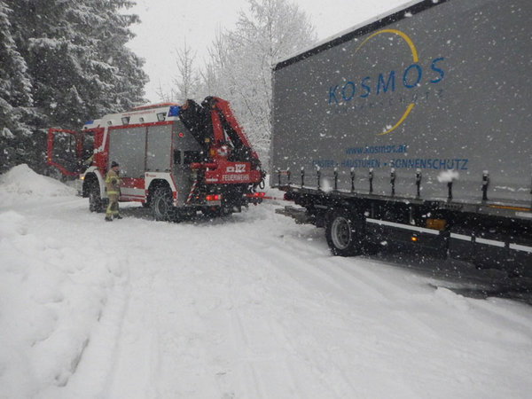 Die Feuerwehr Saalfelden musste am 11.02.2019 um 09:20 Uhr zu einer LKW-Bergung nach Wiesing ausrücken.