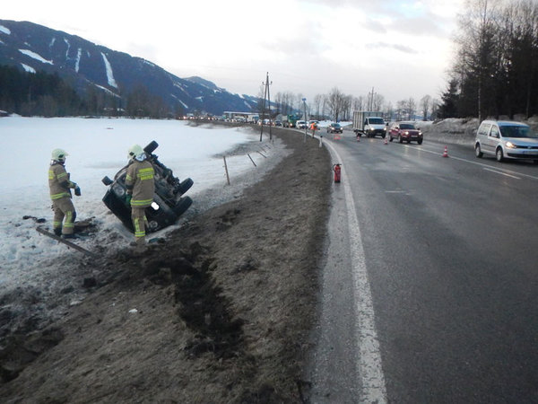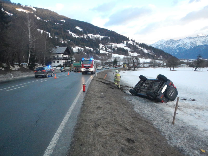 Ein 25-jähriger Pinzgauer fuhr am Morgen des 11. März 2019 mit seinem Pkw auf der Pinzgauer Bundesstraße (B 311) in Saalfelden in Richtung Zell am See. Bei winterlichen Fahrbahnverhältnissen verlor der Lenker auf Höhe Harham die Kontrolle über seinen Pkw. Den Pkw schleuderte es über die Gegenfahrbahn und er kam auf der Seite liegend an der Fahrbahnböschung zum Stillstand. Der Lenker wurde unbestimmten Grades verletzt und im Krankenhaus behandelt. Während der Unfallaufnahme kam es zu kurzen Verkehrsbehinderungen.Presseaussendung