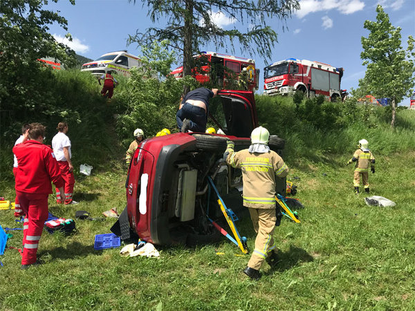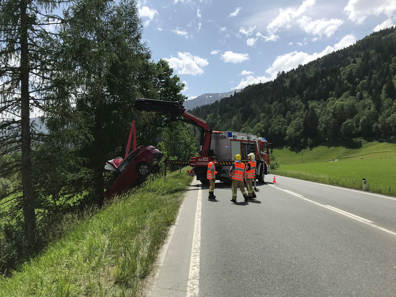 Die Feuerwehr Saalfelden wurde am 11.06.2019 um 13:56 Uhr zu einem schweren Verkehrsunfall mit eingeklemmter Person auf der B311 Höhe Kehlbach alarmiert.