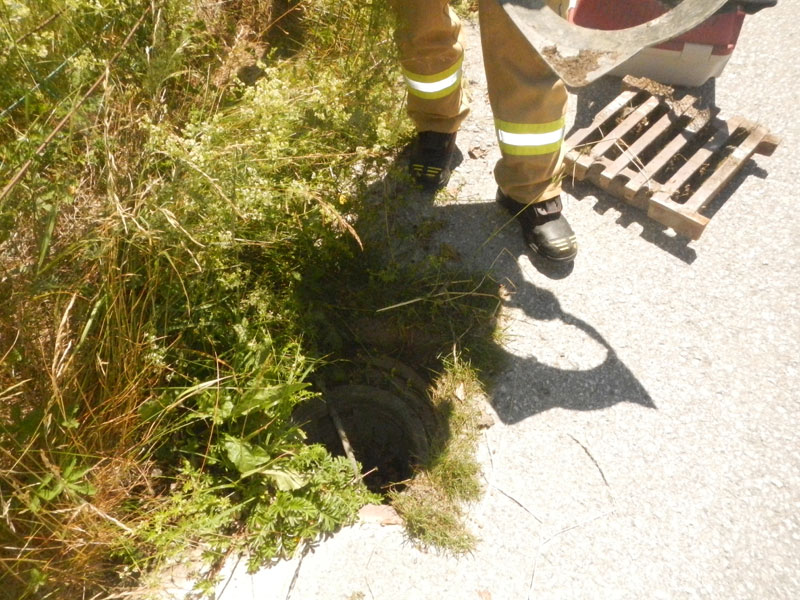 Eine Katze wurde aus einem Regenschacht gerettet und der Tierärztin Fr. Dr. Yaldez übergeben.