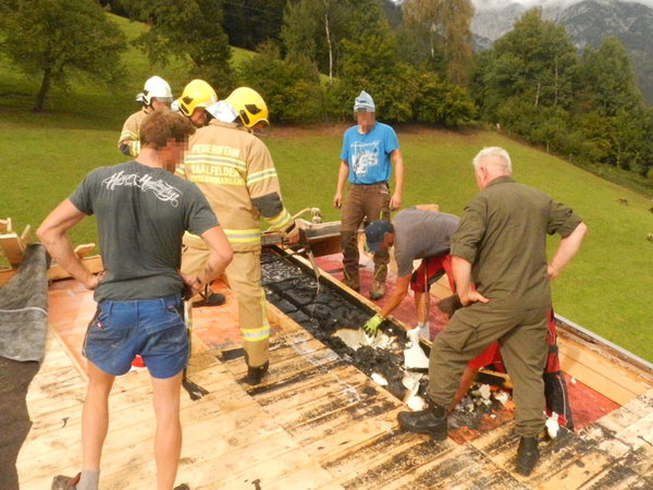 Durch Flämmarbeiten am Neubau im Bereich des Daches geriet ein Teil des Dachstuhles in Brand. Der Brand konnte rasch gelöscht werden.