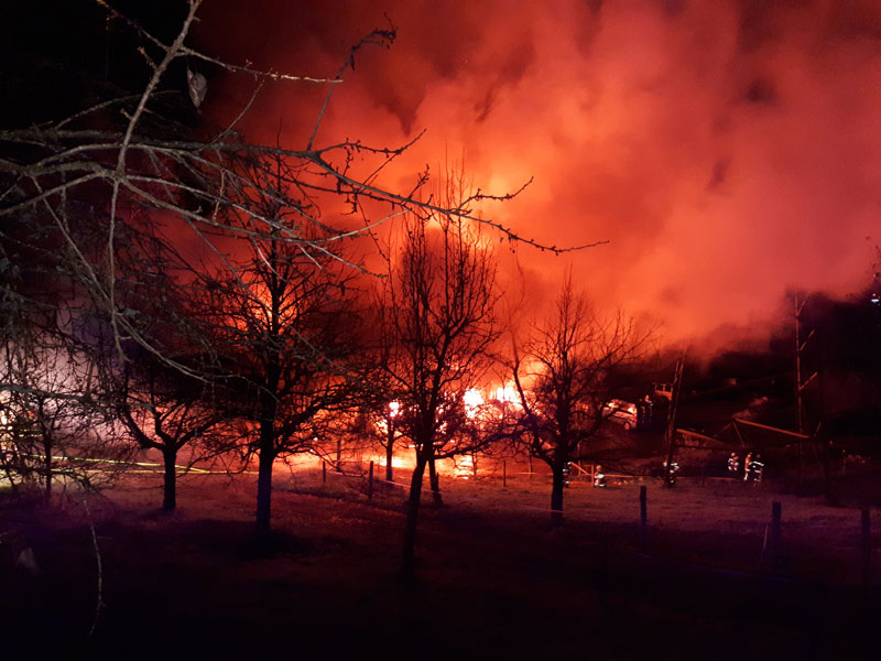 Die Feuerwehr Saalfelden wurde am 09.11.19 um 19:53 Uhr zu einem Brand einer Halle beim Hinterlehen-Gut alarmiert.