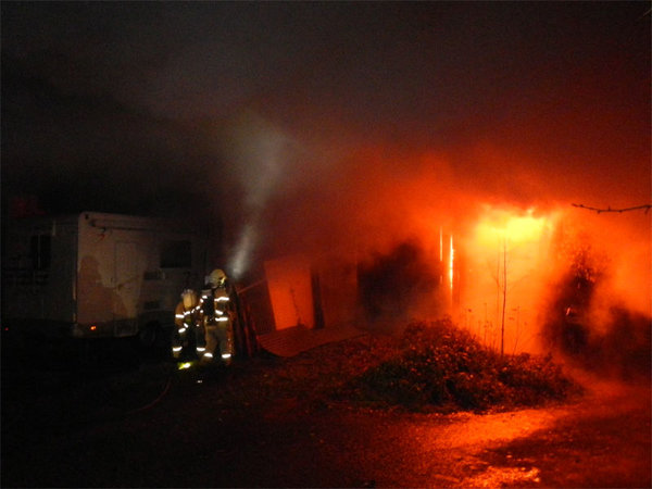Beim Eintreffen der Einsatzkräfte stellte sich heraus, dass es sich um eine Werkstatt handelte mit mehreren Fahrzeugen und gelagerten Gasflaschen.