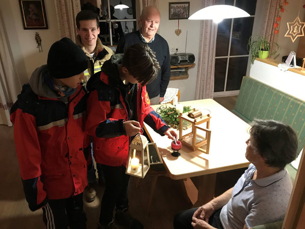 Die Feuerwehrjugend Saalfelden überbrachte am 23. Dezember 2019 das Friedenslicht von Betlehem an die Senioren und Ehrenmitglieder der Feuerwehr Saalfelden.