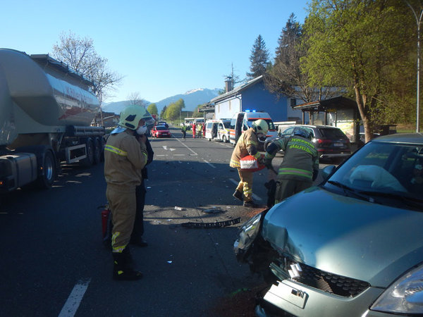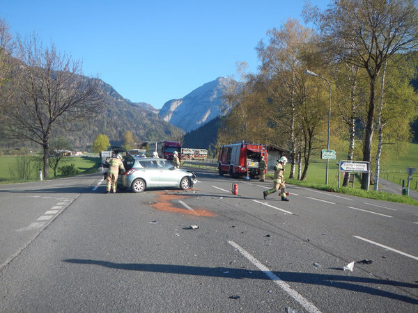 Die Feuerwehr Saalfelden wurde am 23.04.20 um 07:53 Uhr zu Aufräumarbeiten nach einem Verkehrsunfall auf der B311 Höhe Wiesing alarmiert.