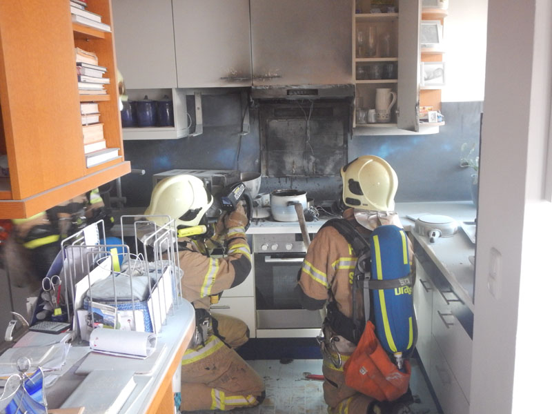 Eine Küche im 2.Obergeschoss war in Brand geraten. Der Besitzer konnte den Brand mittels Feuerlöscher vor dem Eintreffen der Feuerwehr bereits löschen.