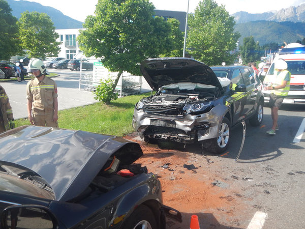 Zwei Fahrzeuge waren frontal zusammengestoßen - die verletzten Personen wurden bereits vom Roten Kreuz versorgt.