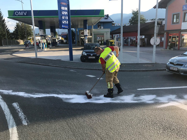 Nach dem Verkehrsunfall mussten die Kräfte der Feuerwehr Saalfelden eine Ölspur von Dorfheim bis Bergland binden.