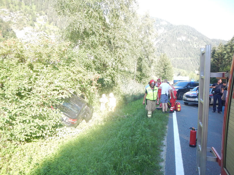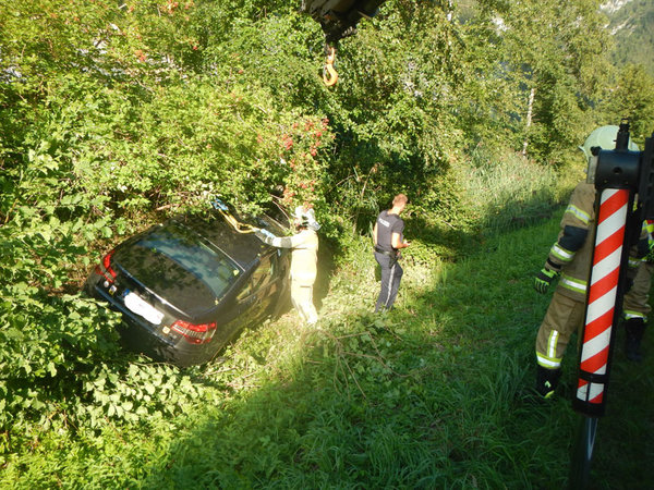 Der Einsatzleiter fand folgende Lage vor: 1 PKW im Straßengraben, keine Personen eingeklemmt, Polizei und Rotes Kreuz vor Ort.