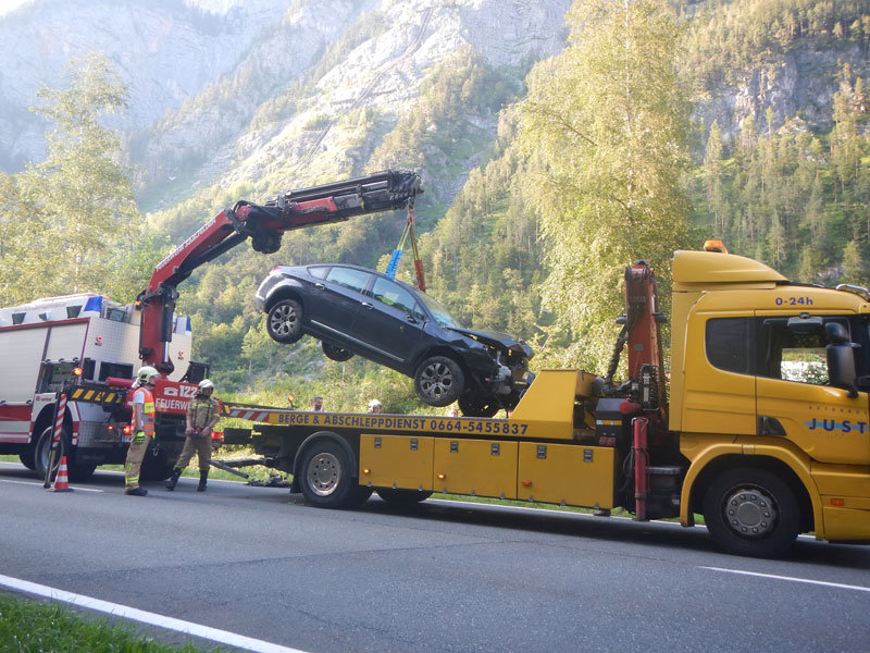 Durch die Feuerwehr wurden folgende Tätigkeiten durchgeführt: Verkehrsabsicherung, Brandschutz sichergestellt, privates Abschleppunternehmen bei der Bergung des Fahrzeuges unterstützt.