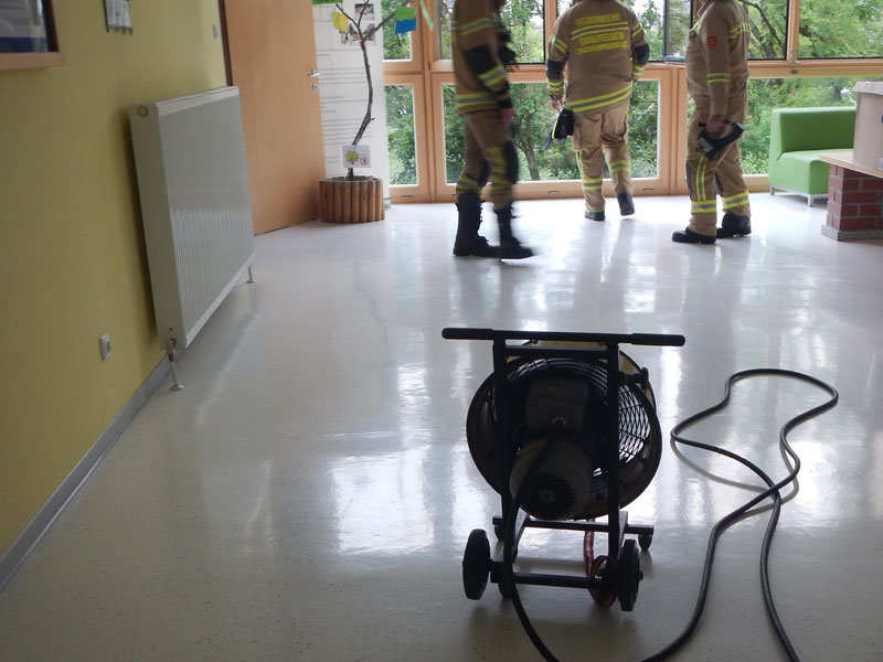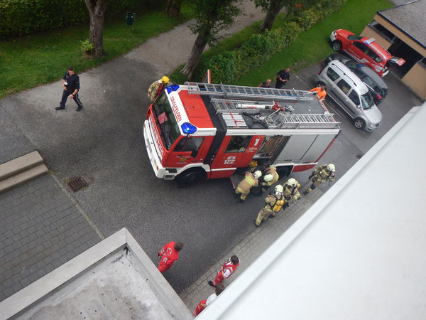 Der Einsatzleiter konnte beim Eintreffen feststellen, dass bereits mehrere Brandmelder ausgelöst hatten - in der Teeküche im 2.OG kam es zu einem Kleinbrand mit starker Verrauchung.