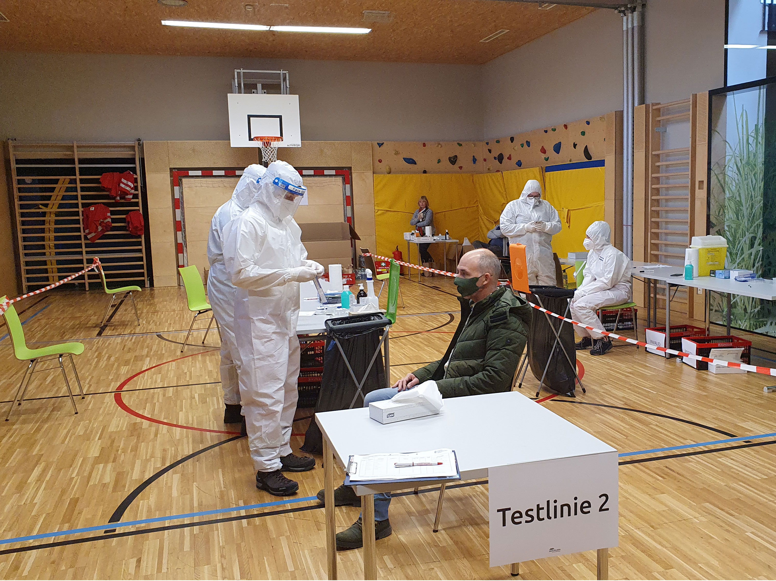 Die Feuerwehr Saalfelden unterstützte die Stadtgemeinde Saalfelden bei den COVID-19 Massentests mit insgesamt 56 Mitglieder der aktiven Mannschaft und 9 Mitglieder der Feuerwehrjugend. Die Feuerwehrjugend bereitete die Lunchpakete für ca. 250 Mitarbeiter vor.