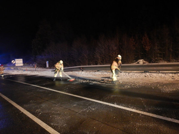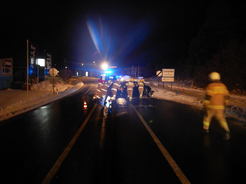 Die Feuerwehr Saalfelden wurde am 23.01.2021 um 20:55 Uhr zu Aufräumarbeiten nach einem Verkehrsunfall auf die B311 alarmiert.