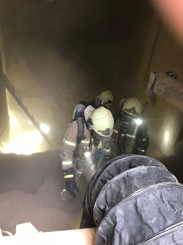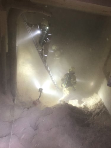 Vor dem Öffnen des Silos wurde ein umfassender Brandschutz aufgebaut.