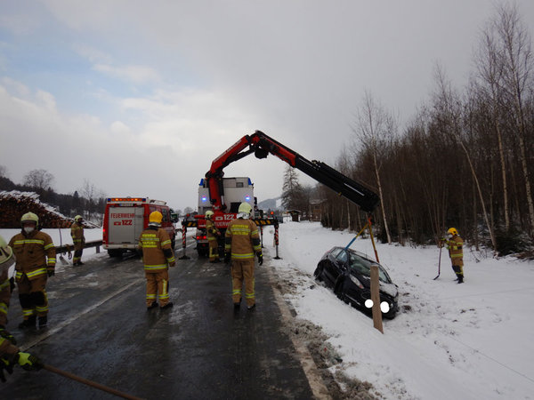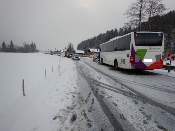 Ein PKW war mit einem Bus kollidiert - durch die Feuerwehr wurde der Verkehr geregelt, der Brandschutz sicher gestellt, das Fahrzeug geborgen und die Aufräumarbeiten durchgeführt.
