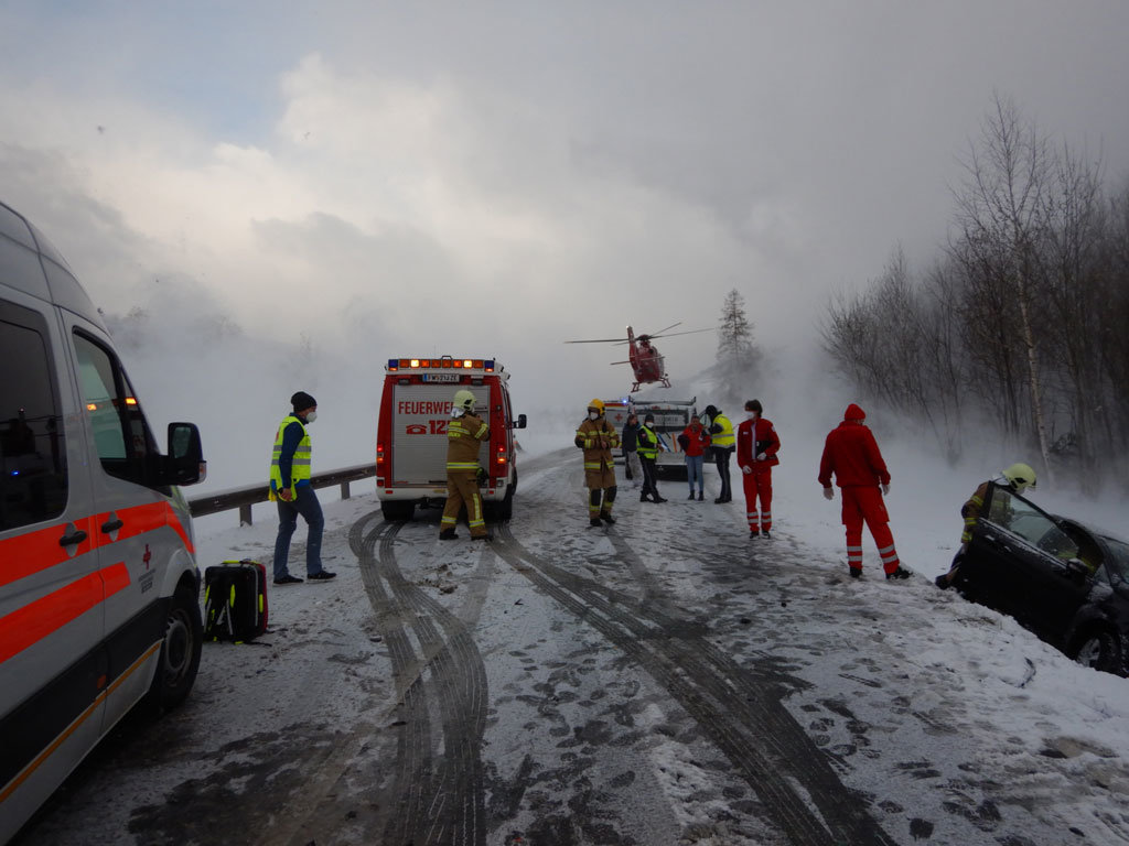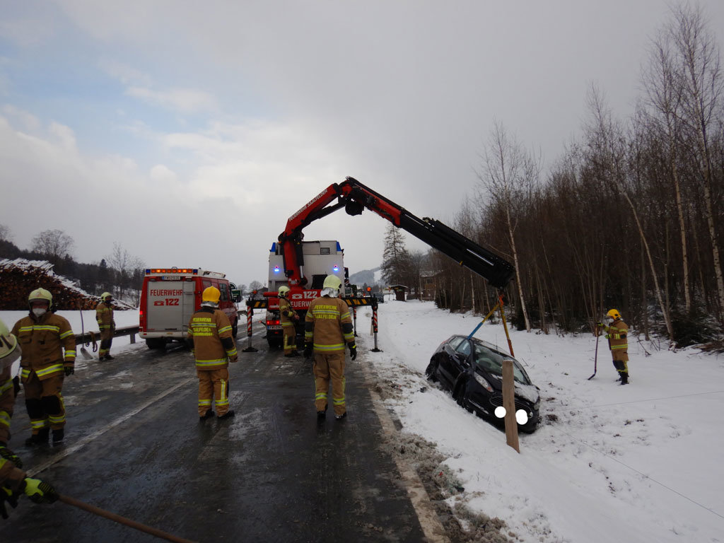 Am 07.04.2021 wurde die Bereitschaftsgruppe der Feuerwehr Saalfelden um 07:57 Uhr zu Aufräumarbeiten nach einem Verkehrsunfall auf der B164 Richtung Leogang alarmiert.