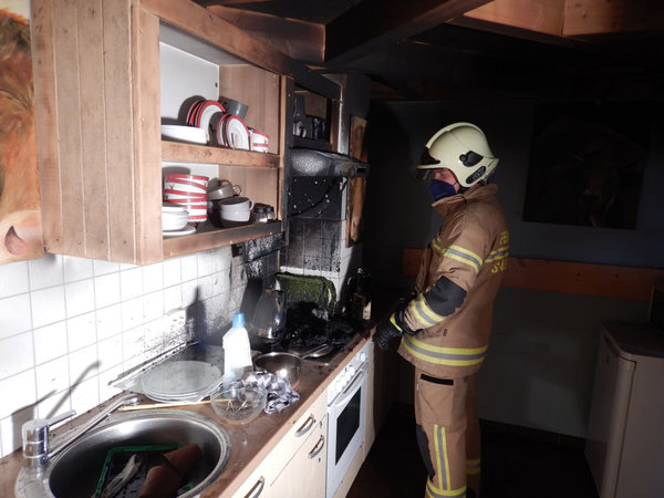 Küchenbrand im Erdgeschoß eines Wohnhauses, welcher bereits vom Eigentümer gelöscht wurde.
