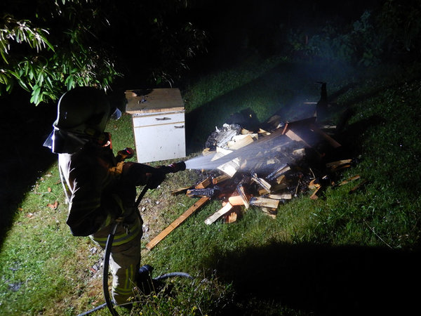 Der Brand wurde vom Besitzer rechtzeitig bemerkt und konnte mittels Gartenschlauch in Schach gehalten werden.