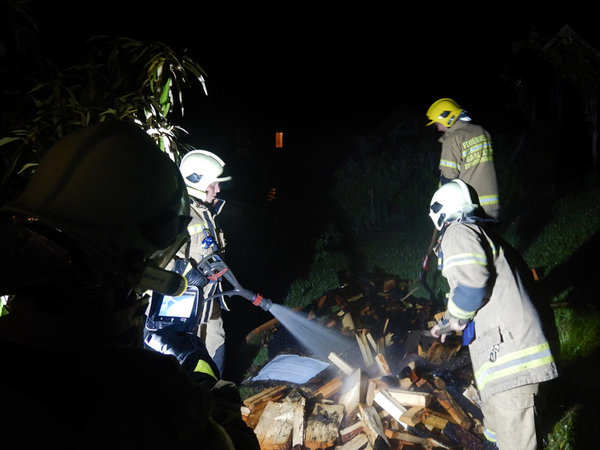 Die Feuerwehr Saalfelden wurde am 25.06.2021 um 23:36 Uhr zu Nachlöscharbeiten nach einem Brand in Ramseiden alarmiert.