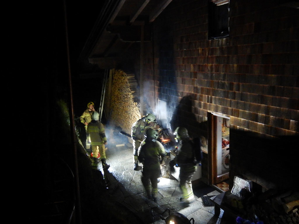 Die Feuerwehr Saalfelden führte die Nachlöscharbeiten durch und überprüfte den Bereich mittels Wärmebildkamera.