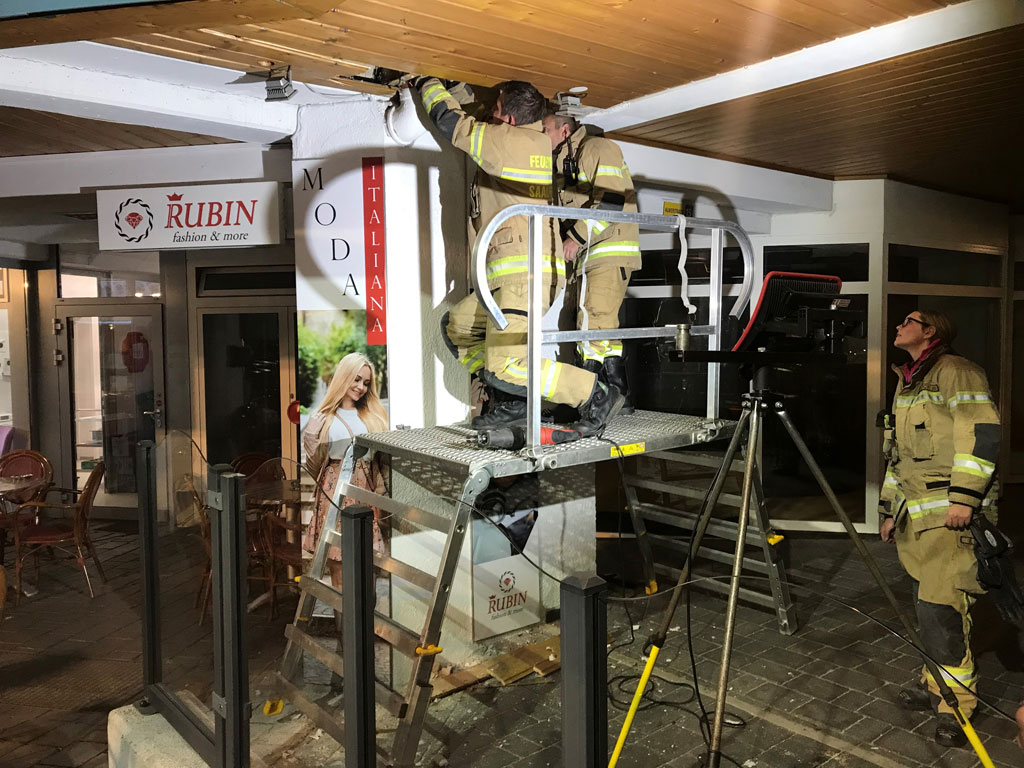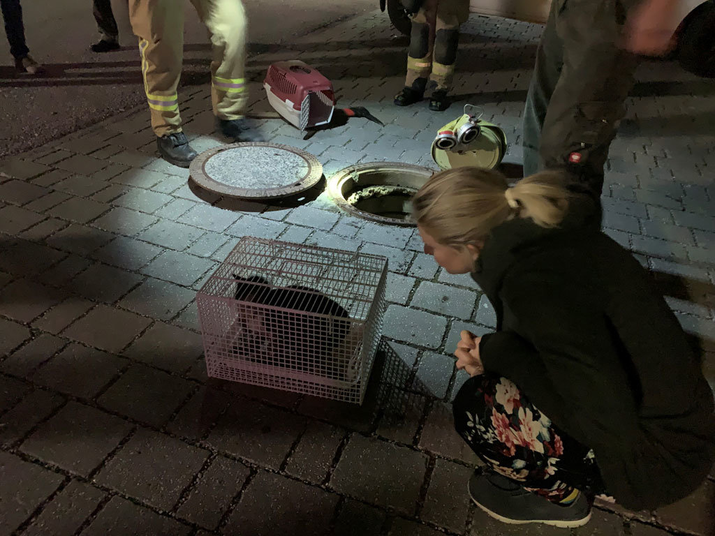 Eine Katze war in ein Regenrohr gefallen und konnte sich selbständig nicht mehr befreien - mit Hilfe des Tierarztes und dem Kamerawagen des Reinhalteverbandes konnte die Katze aus ihrer misslichen Lage befreit werden.