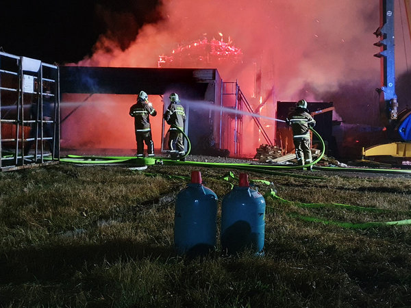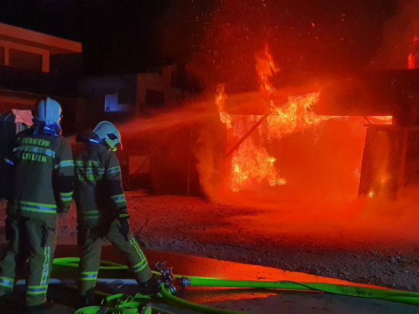Beim Eintreffen am Einsatzort wurde dem Einsatzleiter mitgeteilt, dass sich auf der Garagendecke mehrere Gasflaschen befinden. Nachdem die Gasflaschen geborgen werden konnten, wurde ein umfassender Angriff gestartet, um zwei stark gefährdete Nachbarobjekte zu schützen.