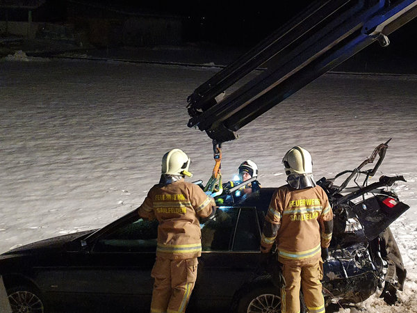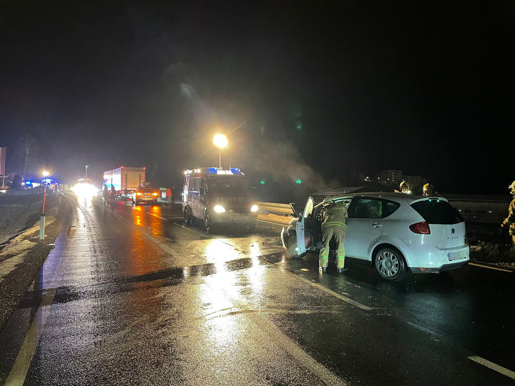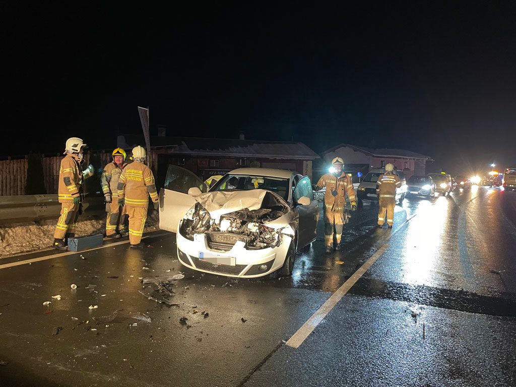 Die Feuerwehr Saalfelden Hauptwache und der Löschzug Wiesing wurden am 23.12.2021 um 23:10 Uhr zu einem Verkehrsunfall auf der B311 Höhe Schörhof alarmiert.