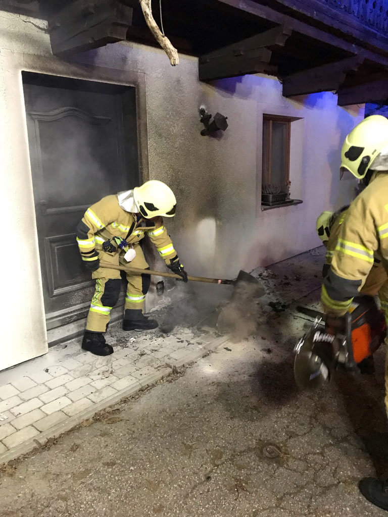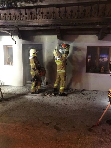 Die Feuerwehr Saalfelden Hauptwache sowie der Löschzug Wiesing wurden am 20.12.2021 um 01:04 Uhr zu einem Brand nach Wiesing alarmiert. Bei einem Wohnhaus ist im Bereich der Eingangstür ein Brand ausgebrochen, welcher sich bereits über die Fassadenisolierung ausgebreitet hat. Der Besitzer konnte den Brand mit einem Feuerlöscher vor dem Eintreffen der Feuerwehr unter Kontrolle bringen.