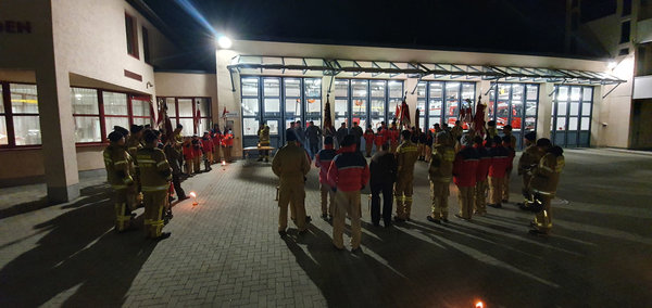 Nach kurzer Ansprache des BFK OBR Klaus Portenkirchner und OFK ABI Ernst Schreder wurde das Friedenslicht an die anwesenden FJ-Gruppen verteilt.