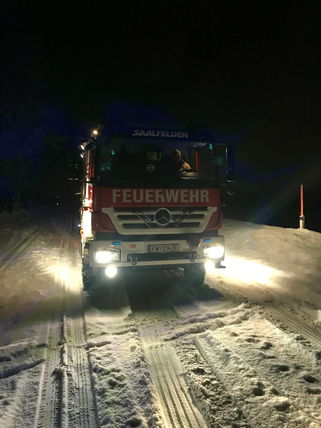 Der Bereitschaftskommandant der Feuerwehr Saalfelden wurde am 10.12.2021 um 06:18 Uhr zu einem hängen gebliebenen LKW im Bereich Parkplatz Pabing telefonisch verständigt.