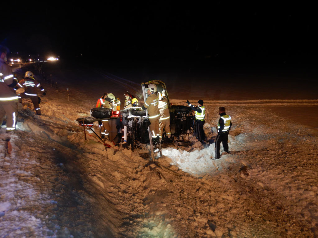 Die Feuerwehr Saalfelden wurde am 09.12.2021 um 18:07 Uhr zu einem schweren Verkehrsunfall mit PKW Überschlag auf die B311 Höhe Gasthof Schörhof alarmiert.