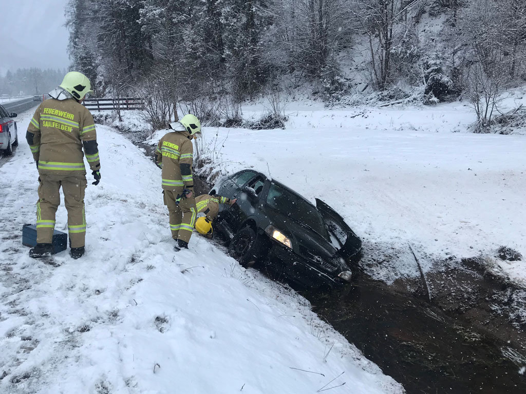 Die Feuerwehr Saalfelden Hauptwache wurde am 06.01.2022 um 09:01 Uhr zu einem Verkehrsunfall auf der B311 Höhe Kläranlage alarmiert.