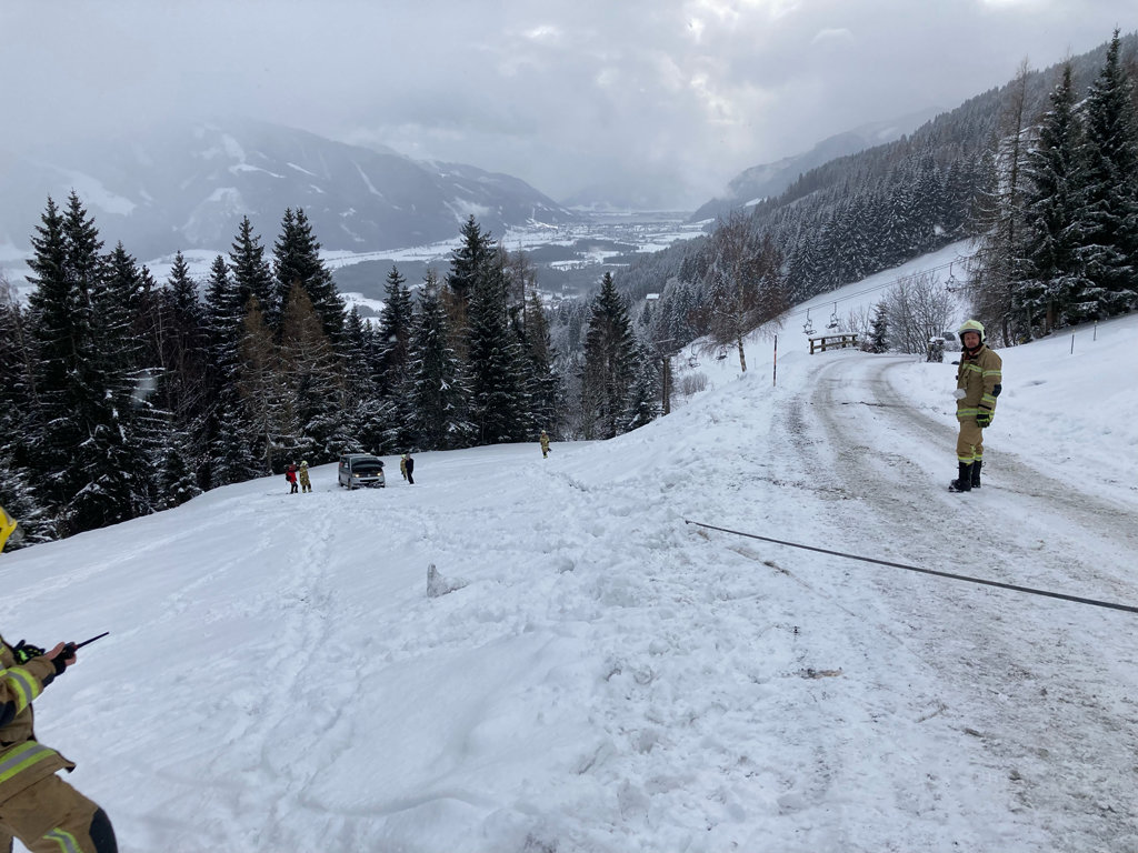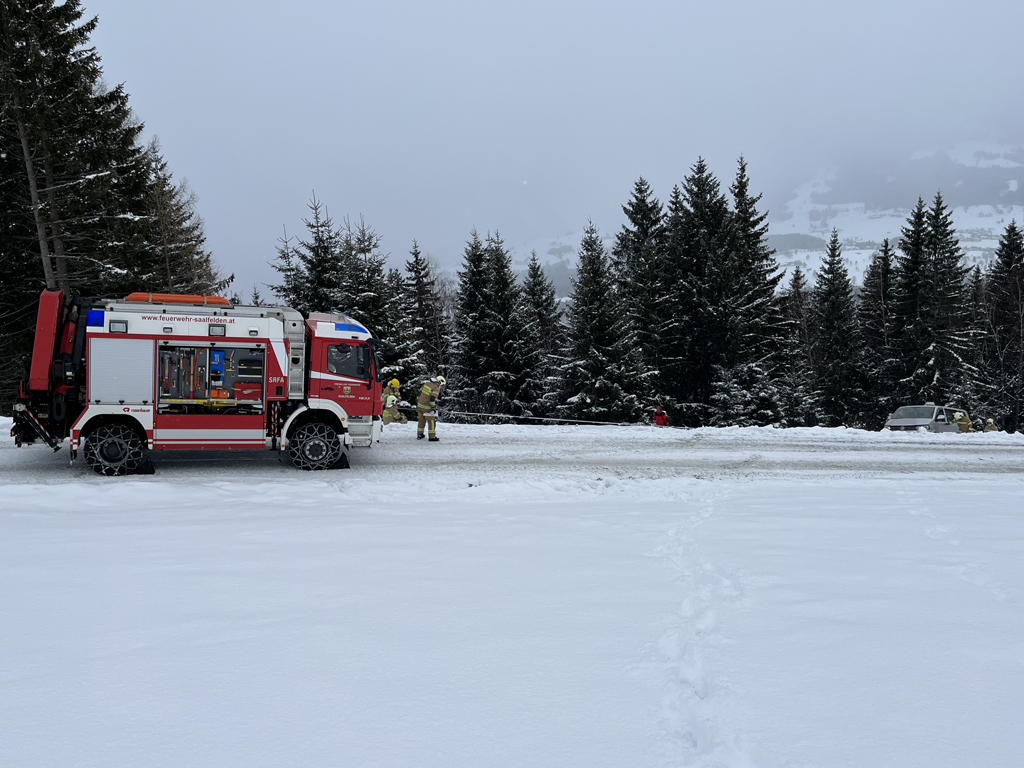 Die Feuerwehr Saalfelden wurde am 06.01.2022 um 12:12 Uhr zu einer Fahrzeugbergung auf den Biberg, im Bereich Huggenbergalm, alarmiert.