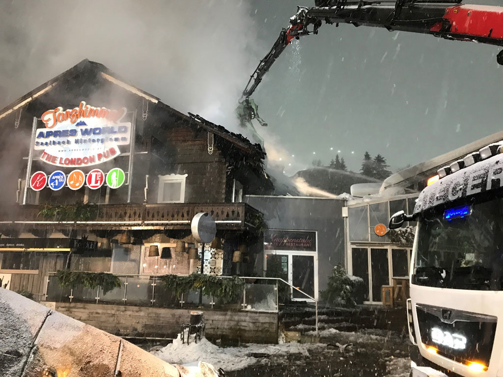 Am 7. Februar gegen halb drei meldet ein deutscher Urlauber eine Rauchentwicklung und den akustischen Alarm in einem Hotel in Saalbach. Kurz darauf kam es zum Brandausbruch. Personen wurden durch das Feuer keine verletzt. Eine rechtzeige Evakuierung der anwesenden Gäste und Mitarbeiter konnte durchgeführt werden. Insgesamt stehen sechs Feuerwehren mit insgesamt 130 Einsatzkräften und 24 Fahrzeugen im Einsatz. Die Löschmaßnahmen sind derzeit noch voll im Laufen, diese werden noch lange in den Tag andauern. Der Brandplatz wird derzeit von Polizeistreifen abgesichert. Die Brandursache ist noch unbekannt. Brandermittler befinden sich bereits vor Ort.