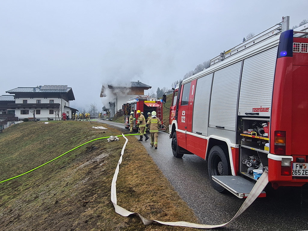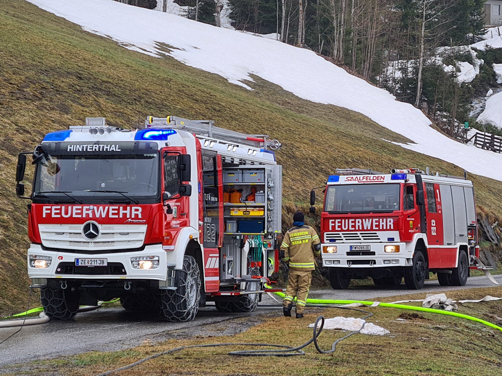 Die Feuerwehr Saalfelden wurde am 31.03.2022 um 12:17 Uhr zu einer nachbarschaftlichen Löschhilfe nach Maria Alm - Hintermoos alarmiert.