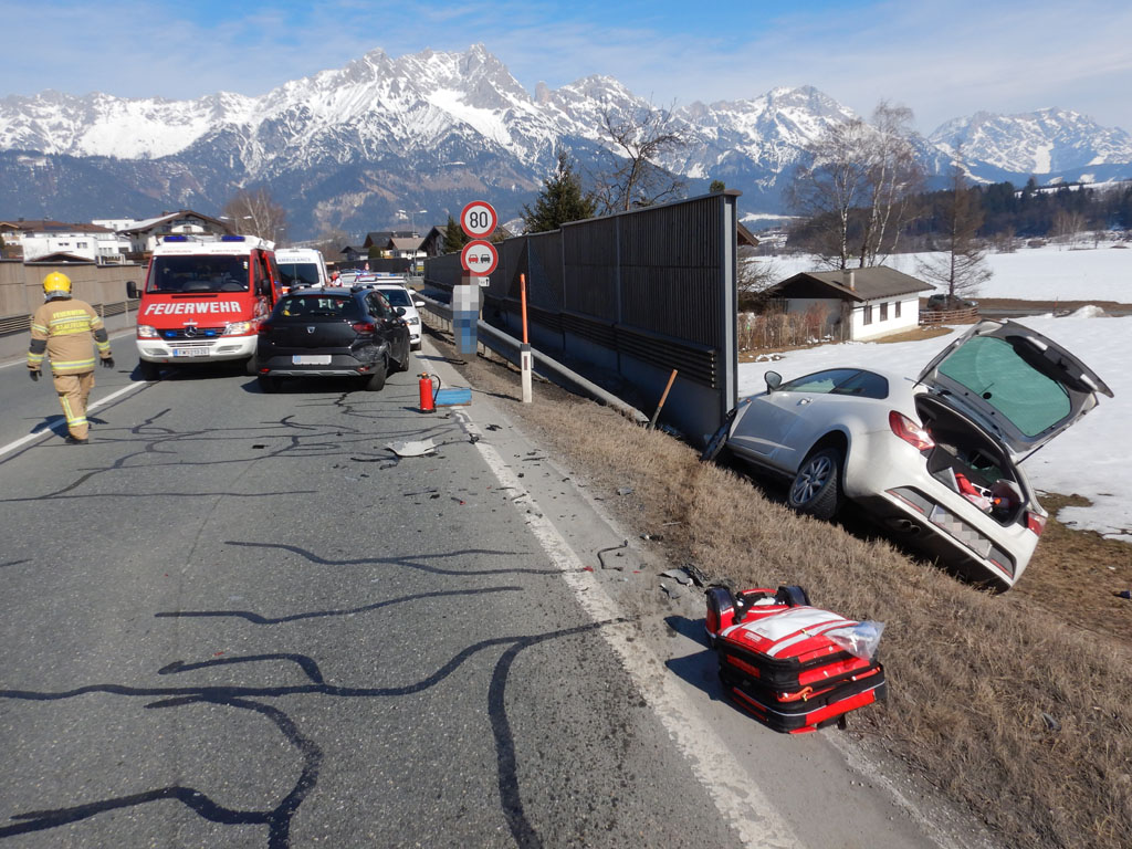 Die Feuerwehr Saalfelden wurde am 14.03.2022 um 13:27 Uhr zu einem Verkehrsunfall auf die B311 Höhe Biberg alarmiert.