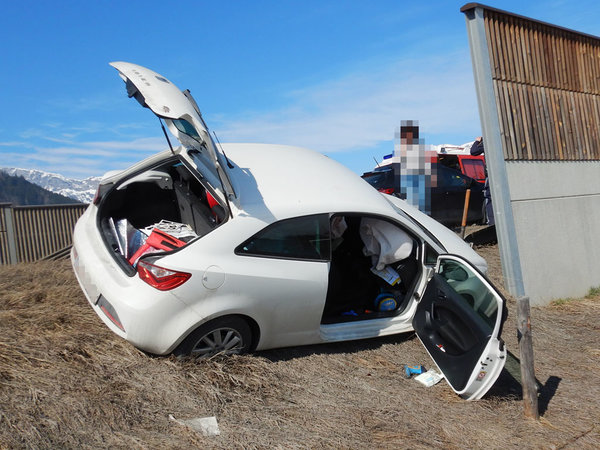 Es handelte sich um einen Auffahrunfall mit zwei beteiligten Fahrzeugen, wobei ein Fahrzeug seitlich von der Straße abgekommen und im Straßengraben zu liegen gekommen ist.