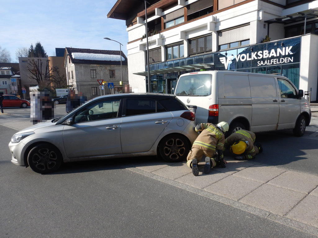 Die Feuerwehr Saalfelden wurde am 14.03.2022 um 09:05 Uhr zu Aufräumungsarbeiten nach einem Verkehrsunfall am Stadtplatz alarmiert.