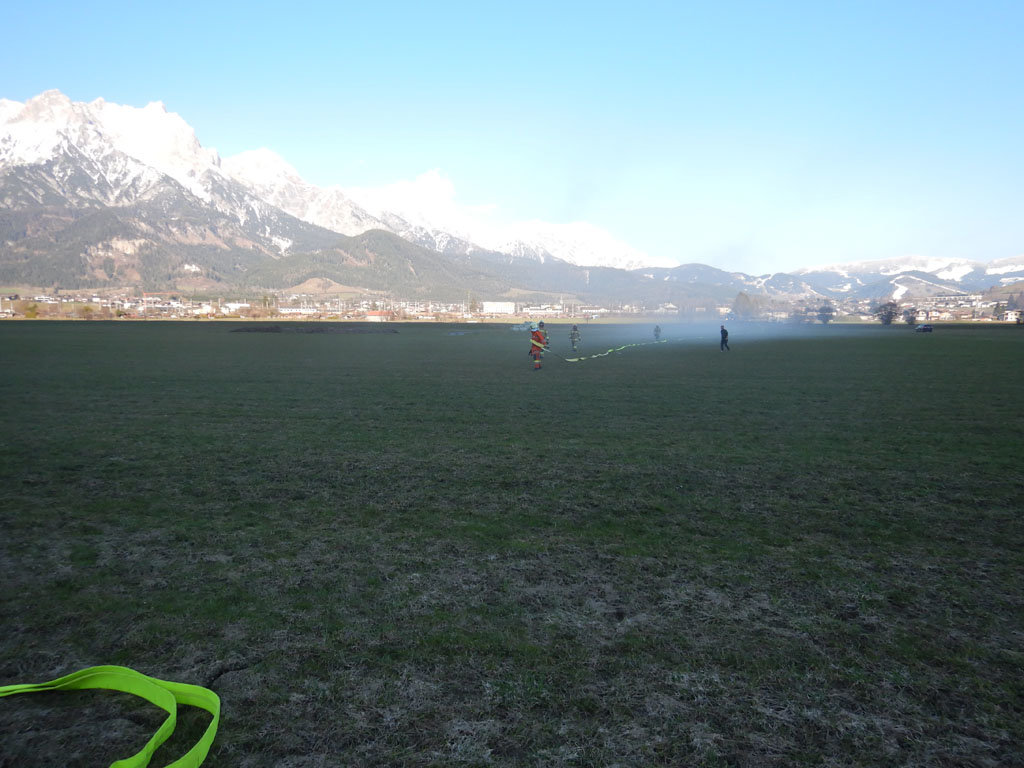 Die Feuerwehr Saalfelden wurde am 04.04.2022 um 17:47 Uhr zu einem Flurbrand im Bereich Hundlwaldsteg alarmiert.