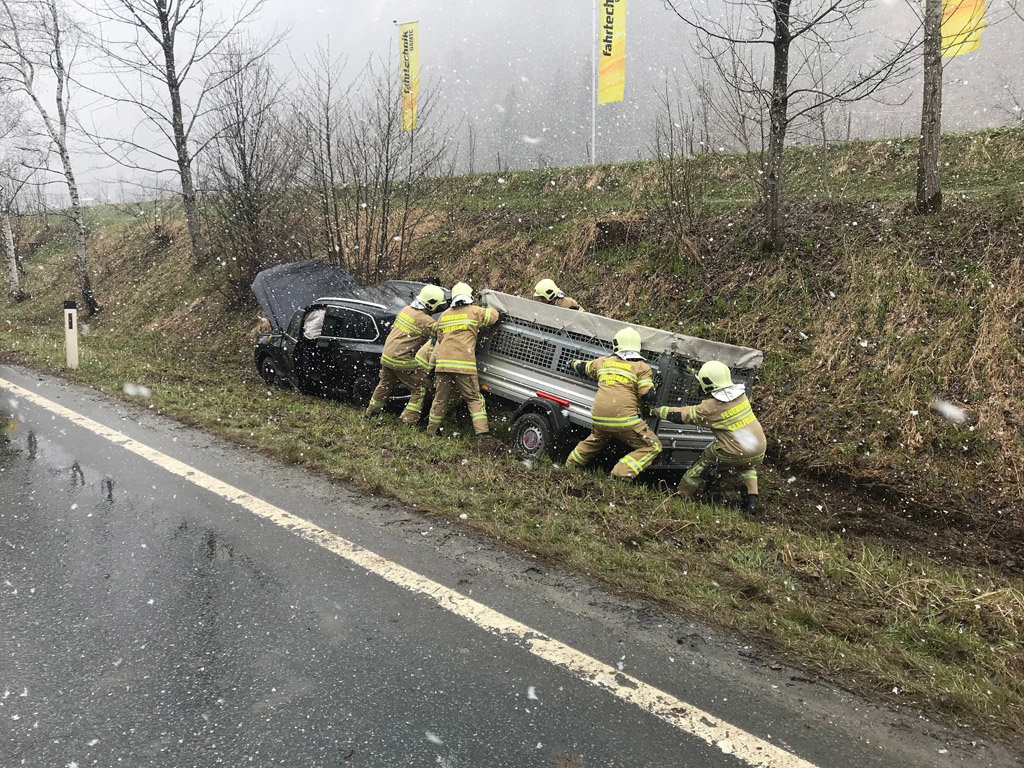 Ein PKW samt Anhänger war von der Straße abgekommen und im Straßengraben stecken geblieben.