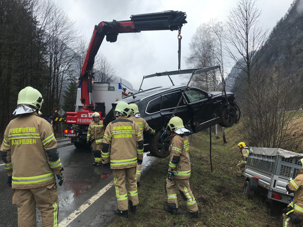 Die Feuerwehr Saalfelden wurde am 10.04.2022 um 14:07 Uhr zu Aufräumarbeiten nach einem Verkehrsunfall auf der B311 in Hohlwegen alarmiert.