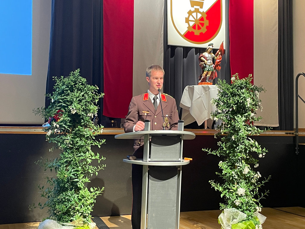 Bei seiner Ansprache bedankte sich OFK Ernst Schreder bei 225 aktiven Mitgliedern für 30.212 geleistete Stunden und für die Ausrückungen bei 436 Einsätzen im Jahr 2021.