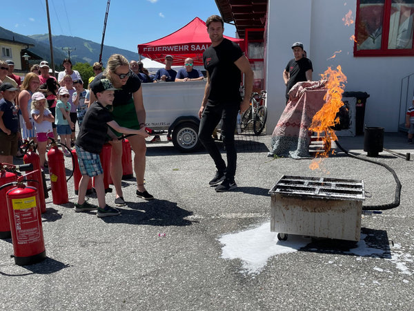Ein weiteres Highlight stellten die verschiedenen Löschvorführungen dar. So konnte man nicht nur sehen, wie ein Fettbrand reagiert, wenn es mit Wasser gelöscht wird oder eine Dose die unter Hitze explodiert, sondern am Löschtrainer konnten die Gäste selbst verschiedene Feuerlöscher ausprobieren.