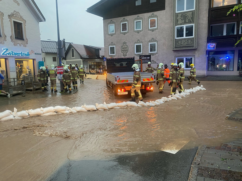 In Saalfelden wurden daraufhin sämtliche Löschzüge, der Wirtschaftshof der Stadtgemeinde Saalfelden, sowie der örtliche Kat-Stab alarmiert.