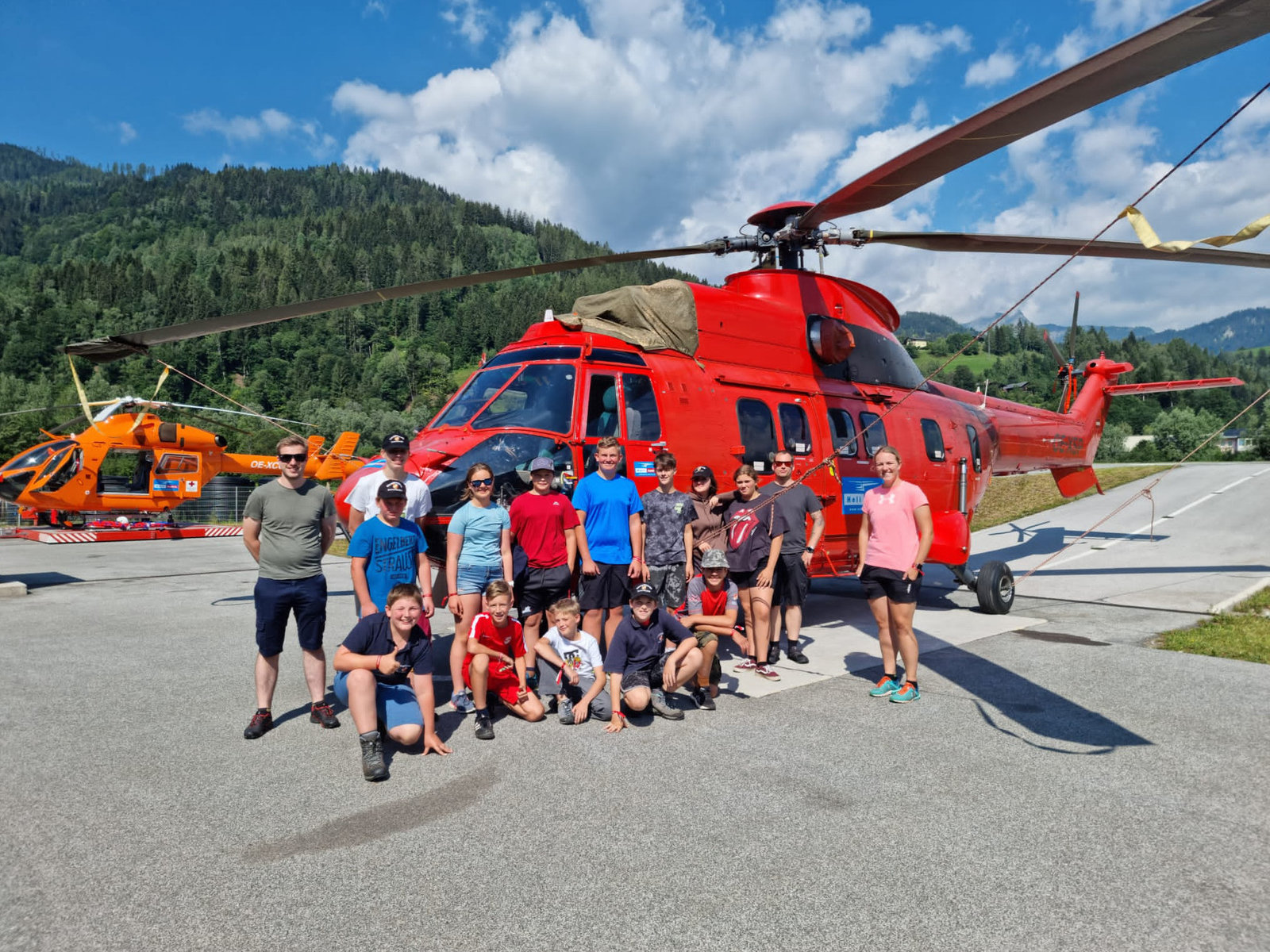 Der Samstag stand für Freizeit zur Verfügung. Diese Zeit wurde genutzt, um bei Heli Austria einen Blick hinter die Kulissen zu werfen. Es war wirklich spannend, die vielen Helikopter aus der Nähe zu sehen und den Geschichten der Mitarbeiter:innen zu lauschen. Danach war eine Abkühlung dringend nötig und so ging es an den Badesee in Goldegg wo getobt, geschwommen und getaucht wurde.