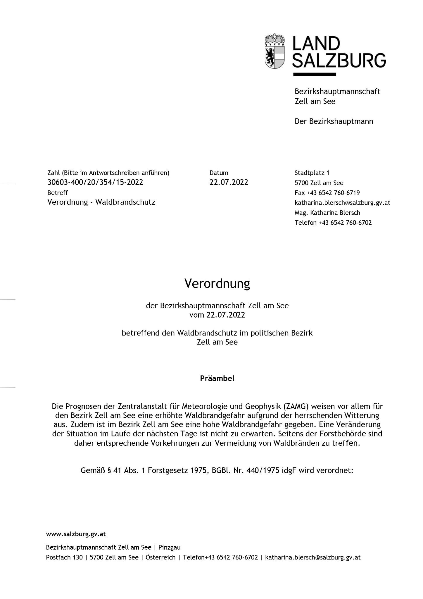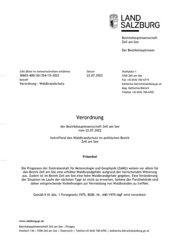 Aus diesem Grund wurde am 22.07.2022 eine Verordnung zum Waldbrandschutz durch die Bezirkshauptmannschaft Zell am See erlassen.