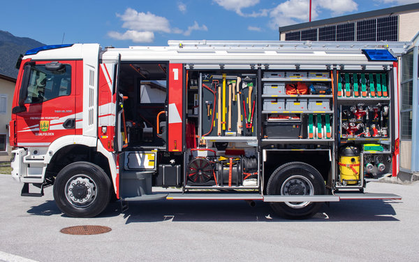 | Ausgerüstet mit: | 4000 Liter Wasser Tank, 100 Liter Schaumtank, 2x Überdrucklüfter, Einbaupumpe RB NH 35, Lichtmast, Umfeldbeleuchtung, Stromerzeuger 14 KVA, Wasserwerfer RM 24, 2 Hochdruckschnellangriffs-Einrichtungen (100m/60m) |