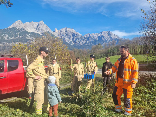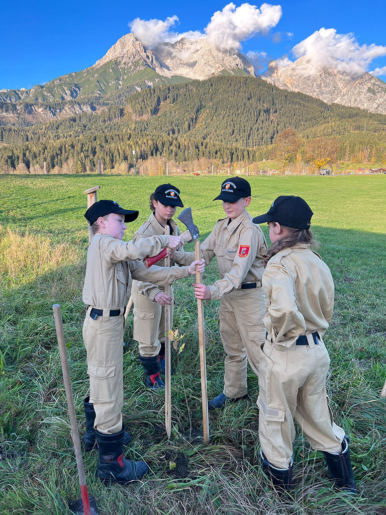 Die Feuerwehrjugend Saalfelden hat im Laufe dieser Aktionswoche 25 Bäumchen erhalten. Gemeinsam mit dem Wirtschaftshof der Stadtgemeinde Saalfelden wurden diese am 27. Oktober 2022 an einem geeigneten Standort eingesetzt. Ein Großteil der Bäume findet sich nun im Kollingwald wieder. Damit unsere Bäume groß und stark werden und uns in Zukunft nicht nur Schatten sondern auch Sauerstoff spenden können, wurden die Setzlinge mit einem schützenden Gitter versehen.