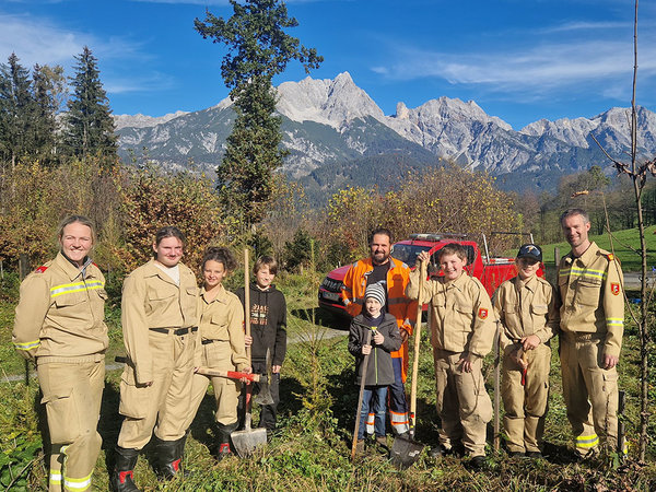 Wir bedanken uns beim ÖBFV für die Spende der Bäume, als auch bei der Stadtgemeinde Saalfelden für die Unterstützung beim Einpflanzen.