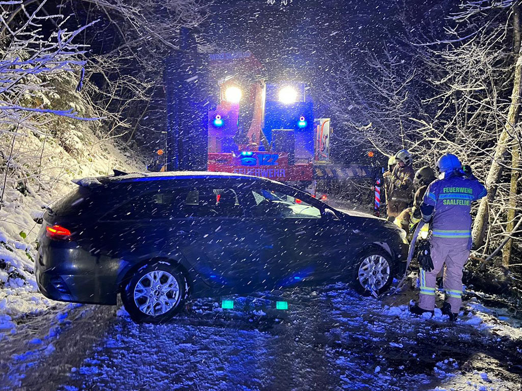 Die Feuerwehr Saalfelden wurde am 16.12.2022 um 20:39 Uhr zu einer Fahrzeugbergung nach Kehlbach alarmiert.
